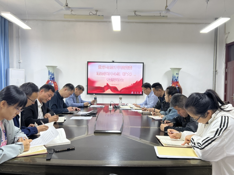 5月6日,数学与统计学院党委于理工楼A3010召开理论学习中心组(扩大)会,专题学习习近平总书记关于中国式现代化的重要论述。会议由学院党委负责人主持,学院领导班子成员、各支部书记参加本次专题学习会。