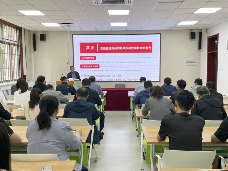 为进一步深入学习宣传贯彻习近平新时代中国特色社会主义思想主题教育,学懂悟透新党章的精神内涵,5月9日下午,党委委员、副校长李峰在理工楼A1018为数学与统计学院全体师生党员讲授题为“学习新党章 奋进新征程”的主题党课。