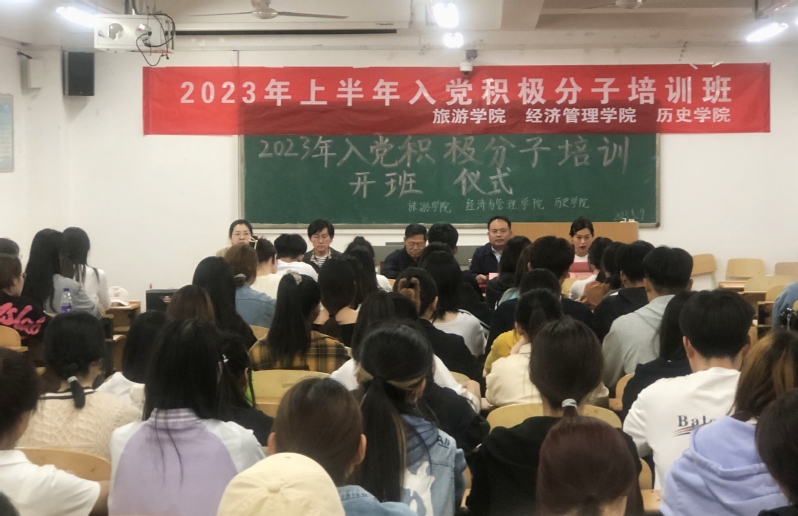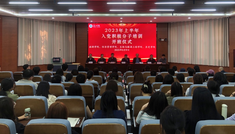 为深入学习贯彻习近平新时代中国特色社会主义思想,提高入党积极分子思想觉悟和政治理论水平,进一步端正入党动机,加强党性锤炼,旅游学院、经济管理学院、生物与酿酒工程学院、历史学院于2023年5月9日在理工楼虚拟仿真实验中心实验室A2004联合举办2023年上半年入党积极分子培训开班仪式。相关学院党委、团委主要负责同志及四个学院入党积极分子参加开班仪式,会议由历史学院党委主要负责同志主持。