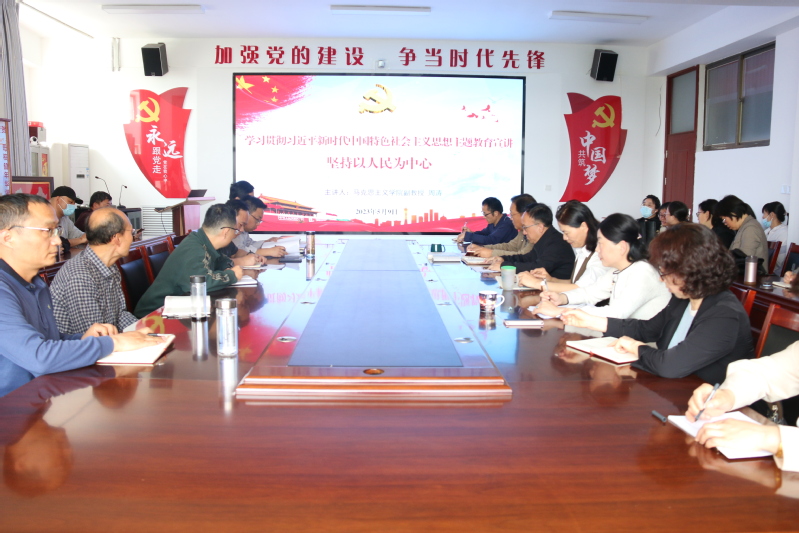 5月9日下午,学校学习贯彻习近平新时代中国特色社会主义思想主题教育宣讲团成员、马克思主义学院副教授周涛以《坚持以人民为中心》为题,在二号综合楼会议室开展主题教育宣讲,物理与电子工程学院全体教职工参加,党委书记田兆胜主持会议。