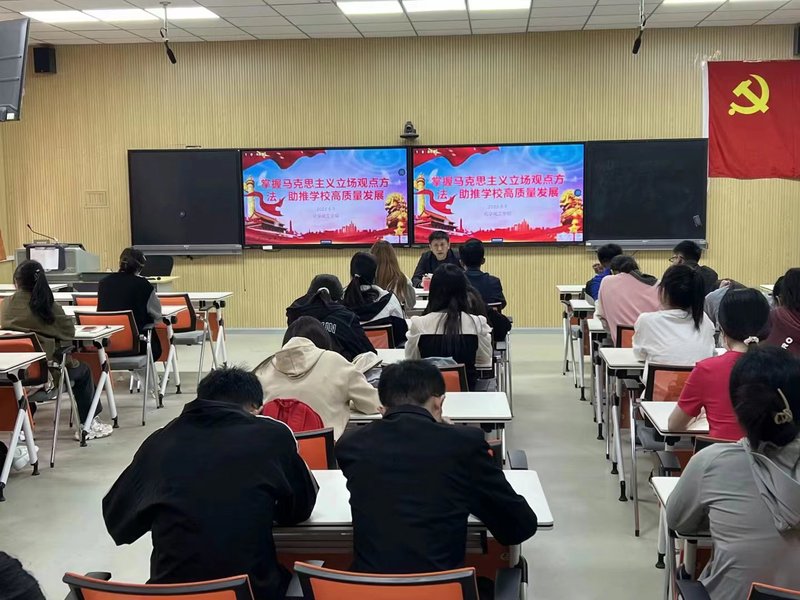 为深入学习贯彻习近平新时代中国特色社会主义思想,有序落实校党委主题教育相关工作部署,5月7日上午,化学化工学院党委副书记宋玉冰为全体学生党员讲授“掌握马克思主义立场观点方法 助推学院高质量发展”专题党课,化学化工学院全体学生党员参加了本次讲座。