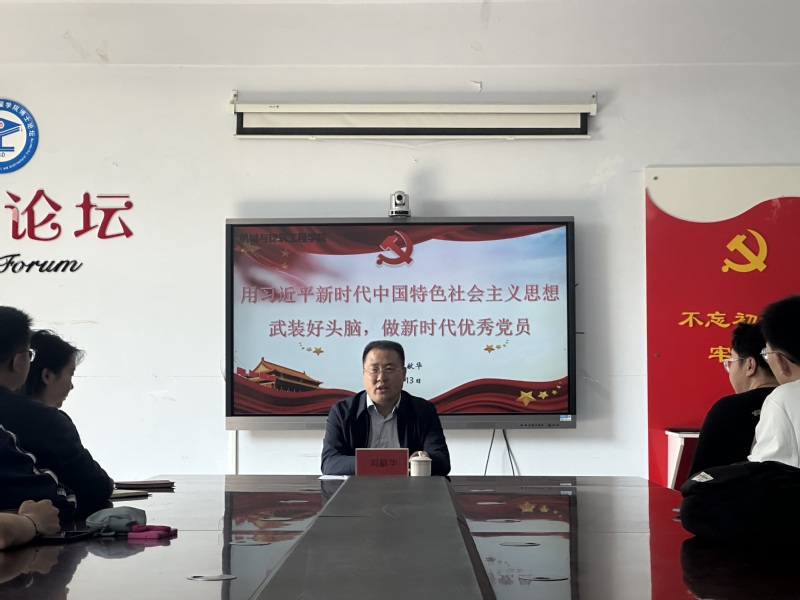 5月13日,机械与建筑工程学院党委书记刘献华于职训楼会议室讲授以“用习近平新时代中国特色社会主义思想武装好头脑,做新时代优秀党员”为题的专题党课,学院在校党员参加。