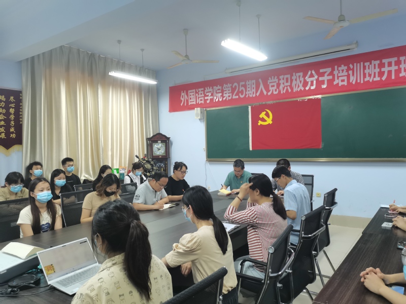 为提升入党积极分子的理论水平与政治素养,教育引导入党积极分子运用习近平新时代中国特色社会主义思想凝心铸魂、指导实践,外国语学院于5月16日下午采用线上、线下相结合的形式举办第25期入党积极分子培训班开班仪式,学院党委书记李明言同志、党委副书记许兆宝同志、辅导员老师和全体师生学员参加开班仪式。