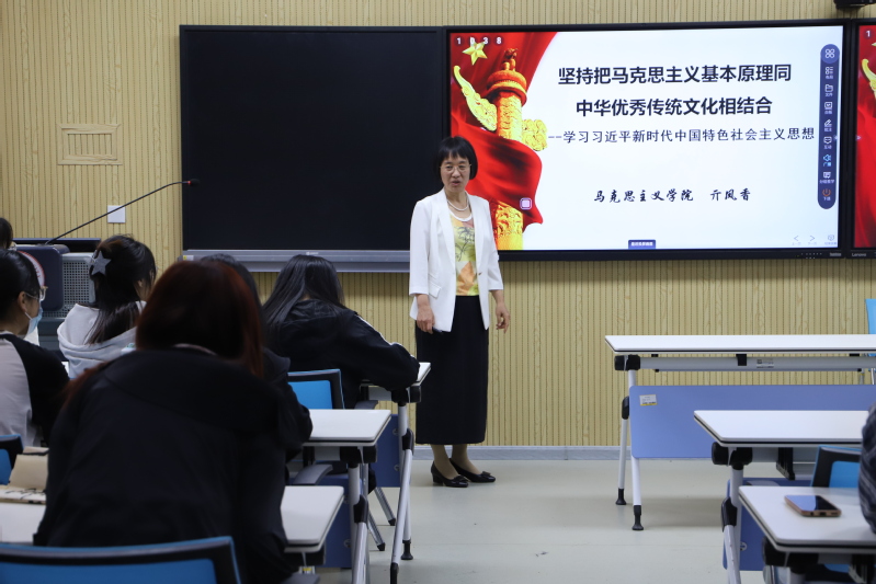 亓凤香聚焦主题教育总要求,结合自身学习经历,以《坚持把马克思主义基本原理同中华优秀传统文化相结合》为题,围绕学习贯彻习近平新时代中国特色社会主义思想主题教育背景,深入浅出地阐释了本次党课主题中“同”字的深刻内涵与意义。她将本次党课分为“马克思主义为什么要同中华优秀传统文化相结合”“马克思主义为什么能同中华优秀传统文化相结合”“马克思主义怎样同中华优秀传统文化相结合”三个部分进行详细阐述。亓凤香以“主体思想与文化根脉的关系”为根据,结合大量历史和现实的典例,强调了“马克思主义”和“中华优秀传统文化”的重要性,进一步强调把马克思主义基本原理同中华优秀传统文化相结合的必要性。亓凤香鼓励同学们,要坚持做中国先进文化的积极引领者和践行者,中华优秀传统文化的忠实传承者和弘扬者,坚持把马克思主义基本原理同中华优秀传统文化相结合、同中国实际相结合。