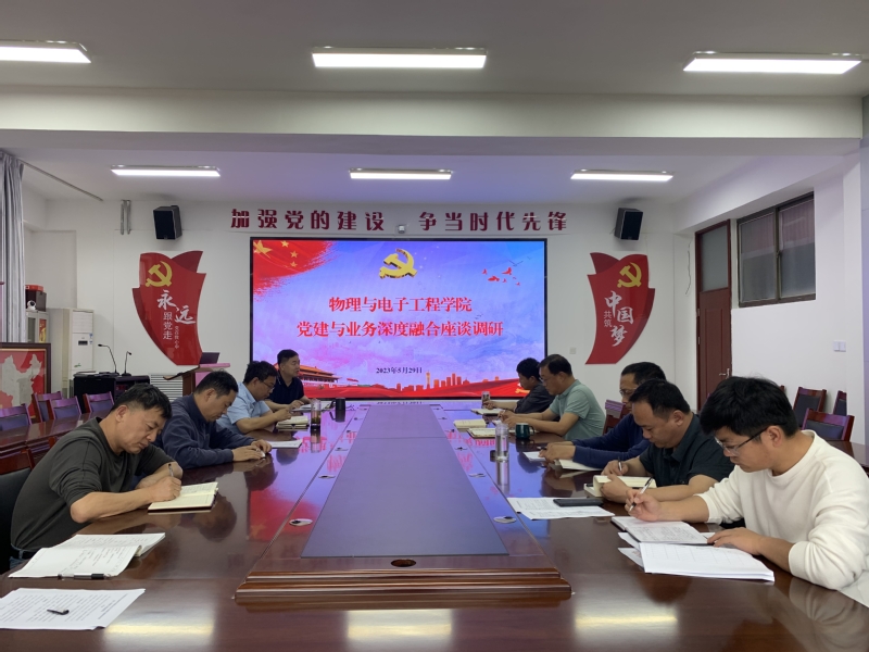 5月29日,物理与电子工程学院党委召开党建和业务深度融合调研座谈会。学院党委书记田兆胜主持了会议。党委成员、党支部书记参加了会议。