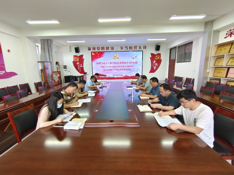 6月12日上午,物理与电子工程学院党委理论学习中心组在2号综合楼3楼会议室集中学习习近平总书记在中共中央政治局第五次集体学习时的重要讲话精神,并围绕“教育强国”开展研讨交流。学院党委书记田兆胜主持学习会,党委理论学习中心组成员参加学习会。