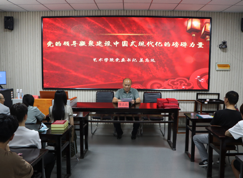 为深入学习党的二十大精神和习近平新时代中国特色社会主义思想,6月16日下午,艺术学院党委主要负责人为学院师生讲授题为“党的领导凝聚建设中国式现代化的磅礴力量”的思政课,艺术学院所属党支部师生党员代表、入党积极分子共计80余人参加。